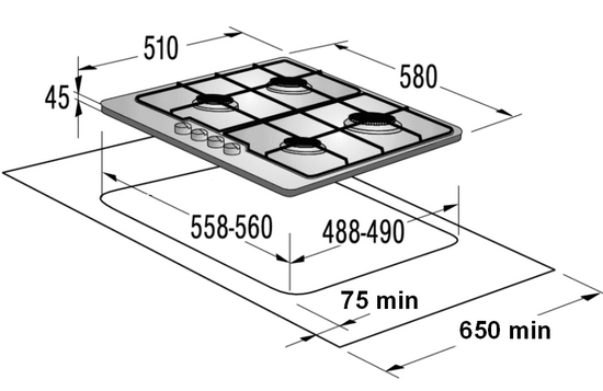 Перед тем, как оформить заказ на столешницу, начертите на листке план вашего кухонного уголка и продумайте размеры будущей столешницы (рис. 1, 2). Желательно чтобы в месте отверстия под варочную поверхность, должно остаться тело столешницы минимум 70 - 80 мм (рис. 3, 4).